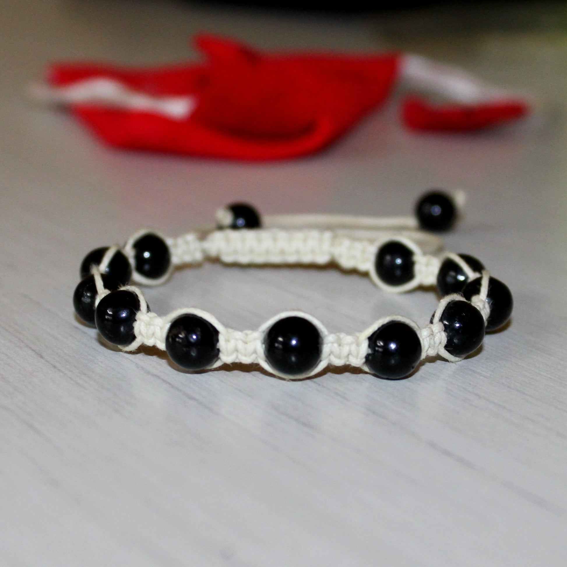 Natural Black Tourmaline Macrame Bead Bracelet